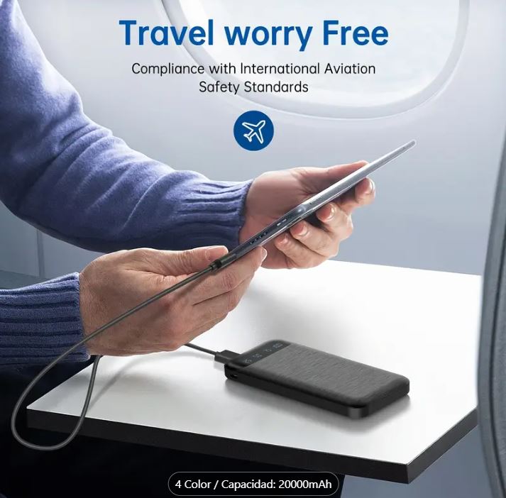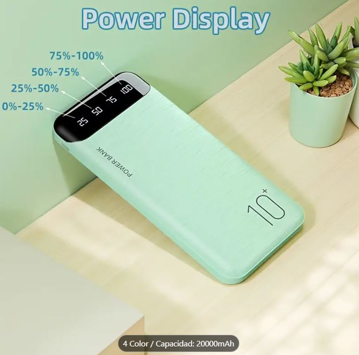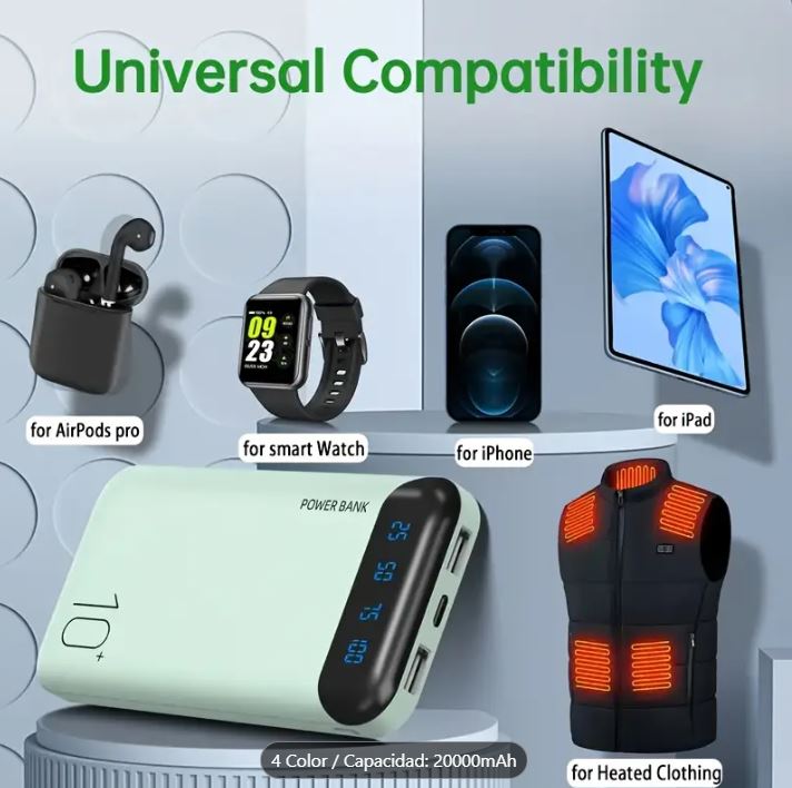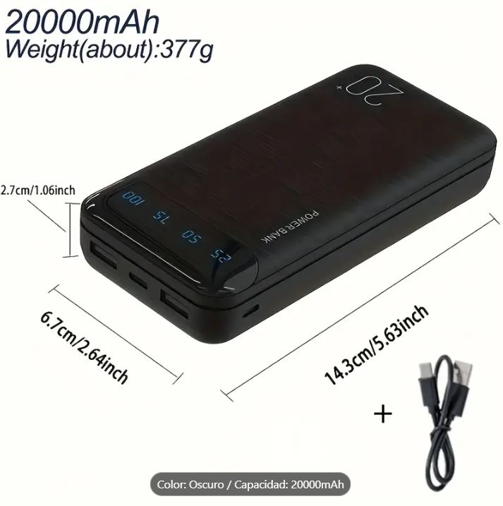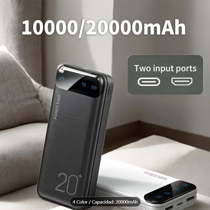 Batería Portátil Power Bank 5V 20000mAh for Phones, Camping Chair with Digital Screen.