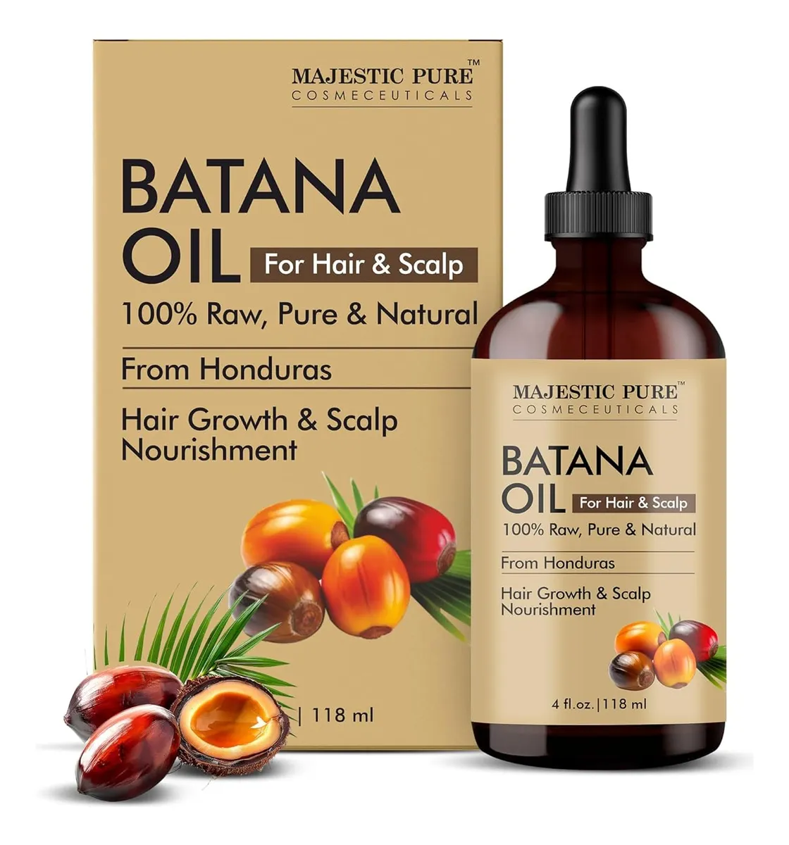Majestic Pure Aceite de batana para nutrición del cabello y el cuero cabelludo, fortalecimiento, nutritiva, voluminizante, sin OMG, 4 onzas líquidas