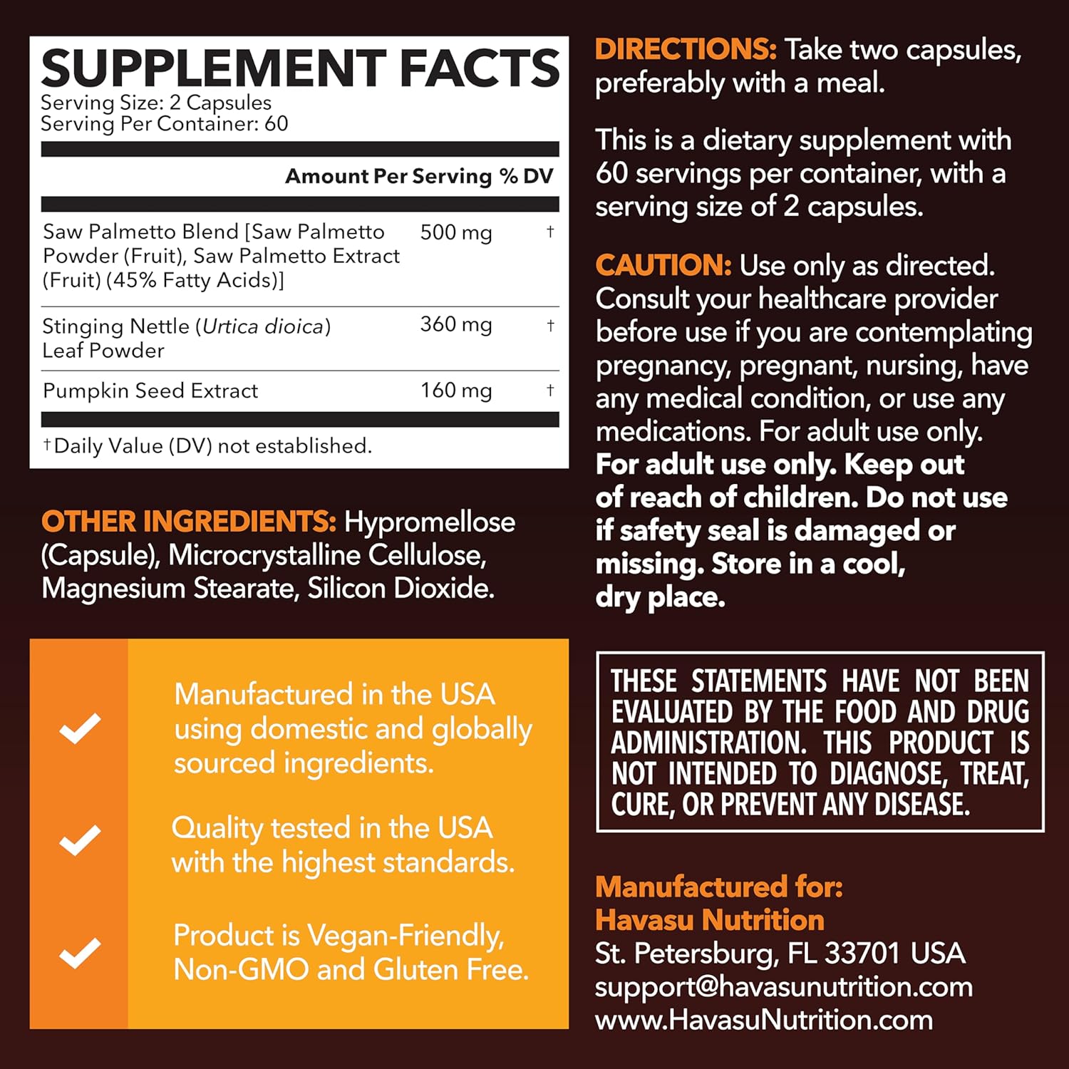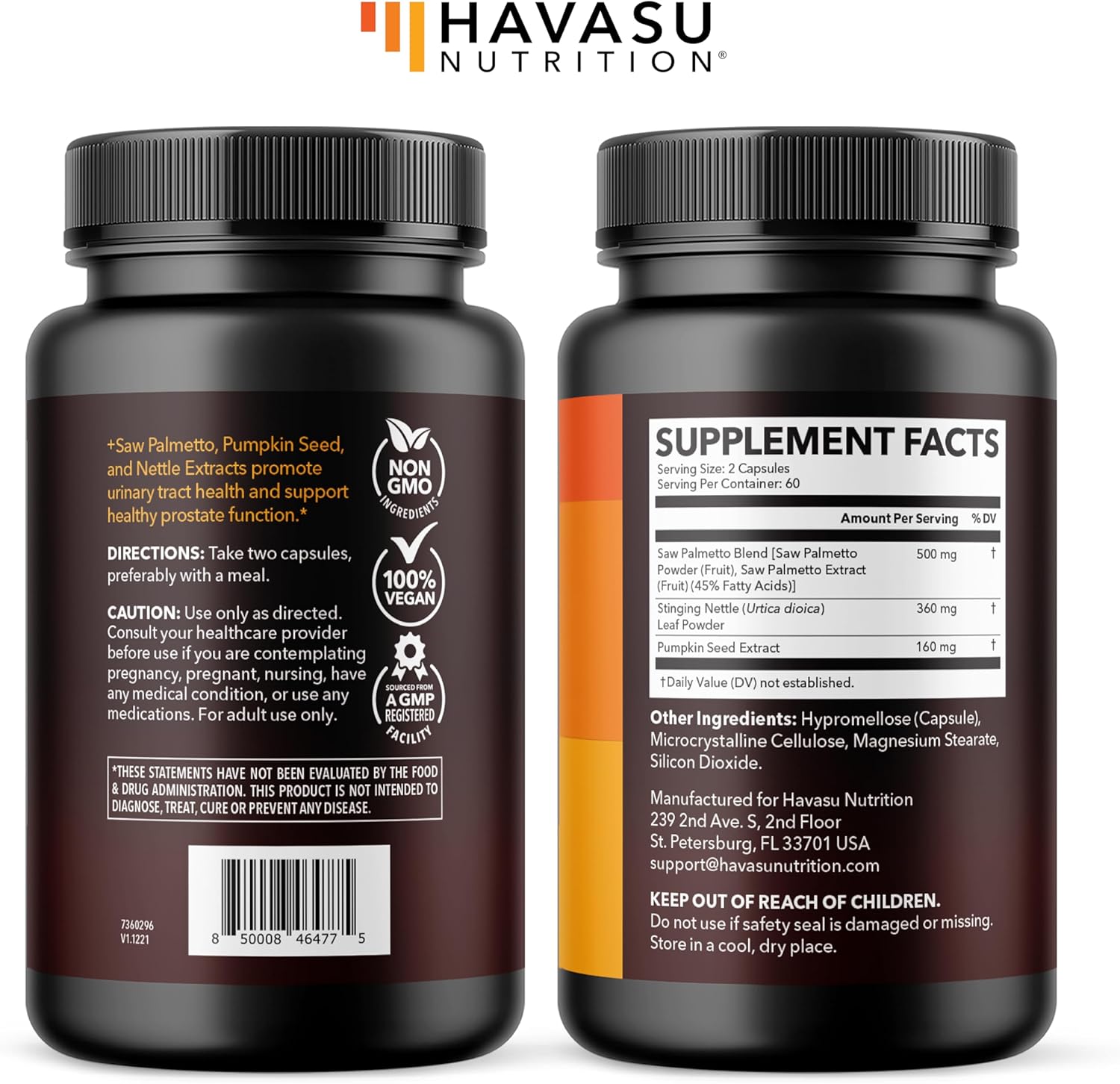 Saw Palmetto Cápsulas Veganas Havasu Nutrition 120 Porciones fórmula avanzada 3X